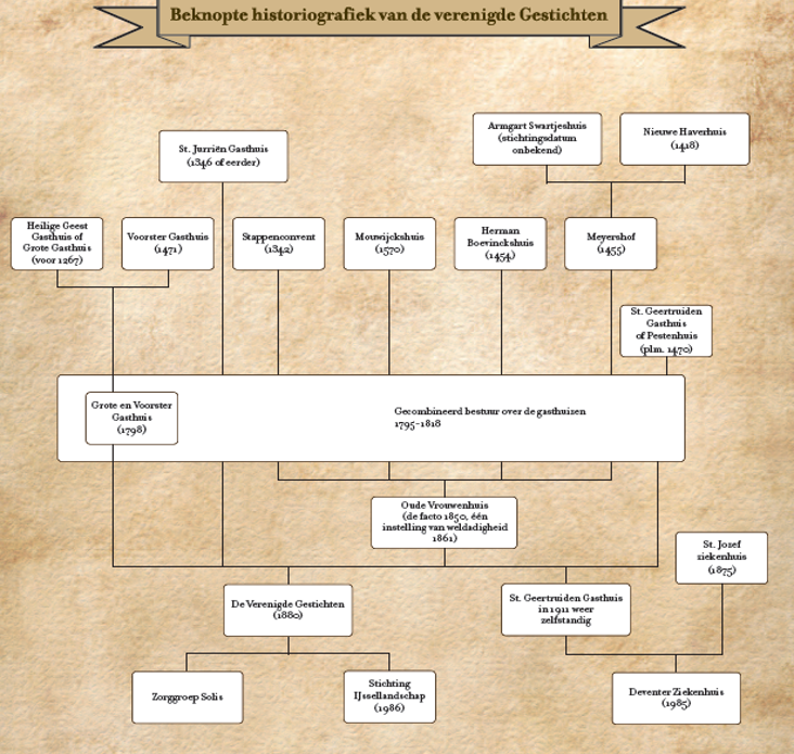 Een van de eerste bekende ‘kostkopers’ Dirk de Munter met zijn vrouw Margaretha lieten rond 1275 grond na aan het Heilige Geest Gasthuis. De bezittingen van de gasthuizen zijn in de loop der eeuwen gegroeid en vormden een garantie dat de zorg voor zieken, armen en bejaarden kon blijven bestaan. Op de boerderijen kwamen pachters te wonen die geld en producten in ruil leverden aan de gasthuizen. Een prachtige lokale economie. Deze bleef eeuwen in stand, totdat na de Tweede Wereldoorlog in Nederland de verzorgingsstaat ontstond. Er ontstonden in de loop van de tijd steeds meer gasthuizen. Deze gasthuizen, verenigd in de Verenigde Gestichten, hadden hun bezittingen niet langer nodig om de zorg te garanderen. Na een ‘voorbereidingsperiode’ van 20 jaar is uiteindelijk in 1986 is IJssellandschap als aparte landerijenstichting losgekoppeld van de bejaardenhuizen. De zorg-tak ging verder onder de naam Verenigde Gestichten, later Zorggroep Solis.