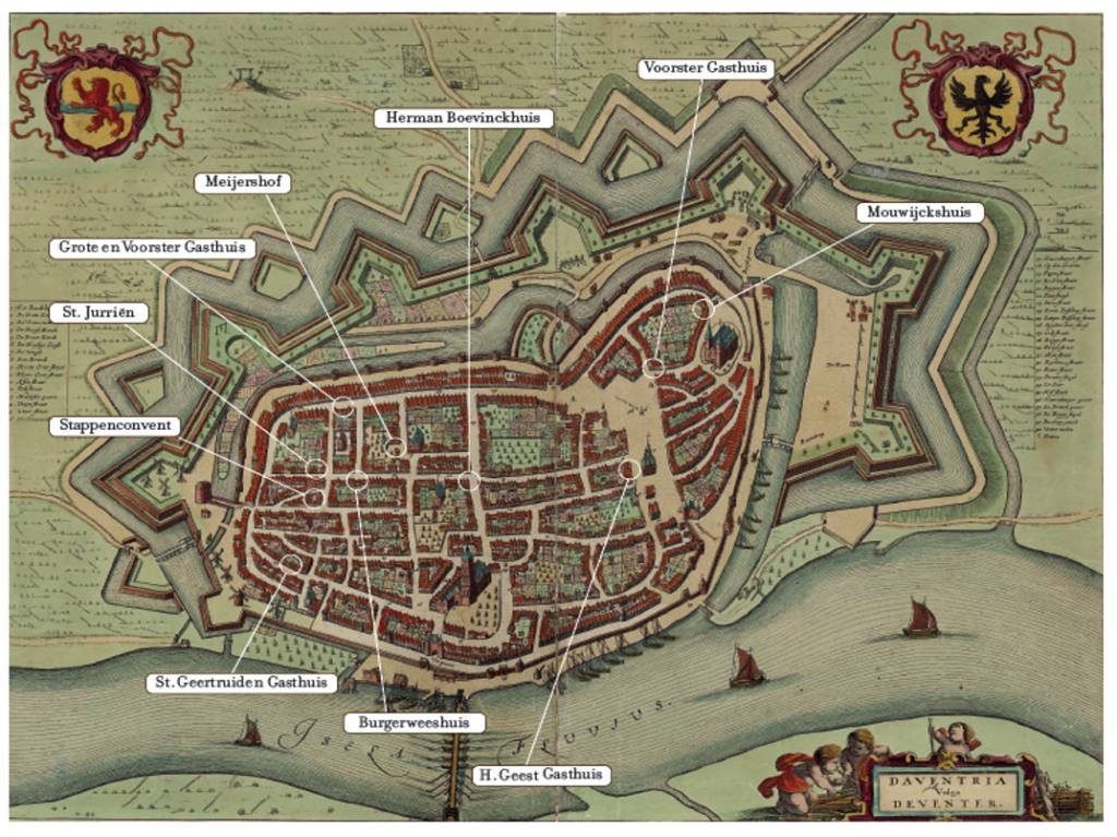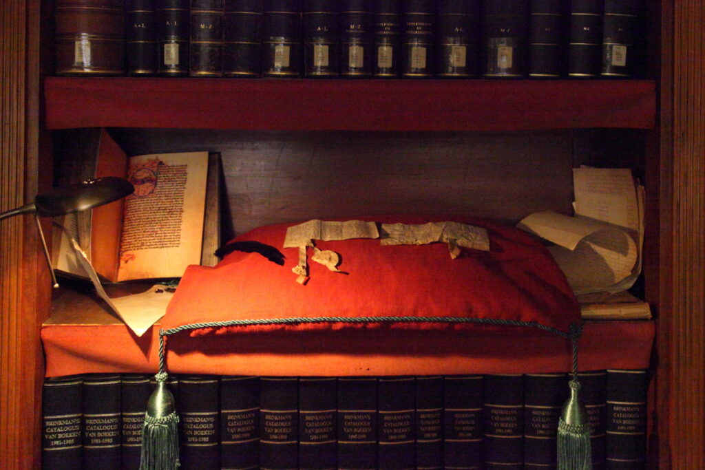 Op onderste foto: de twee oudste documenten uit 1267 en 1275 waarin er een huis en grond wordt geschonken aan het Heilige Geest Gasthuis. Met dank aan de Atheneum bibliotheek Deventer.
