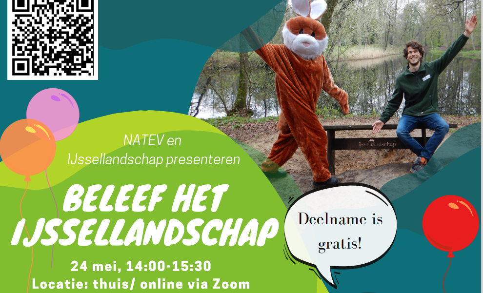 Op maandag 24 mei a.s. (2e pinksterdag) vieren we een online natuurfeestje. Van 14.00 uur – 15.30 uur kun je vanuit je huis samen met ons het IJssellandschap beleven. Boswachter Lasse en Hazel de Haas nemen je mee op avontuur naar het huis van Daisy in het bos.
