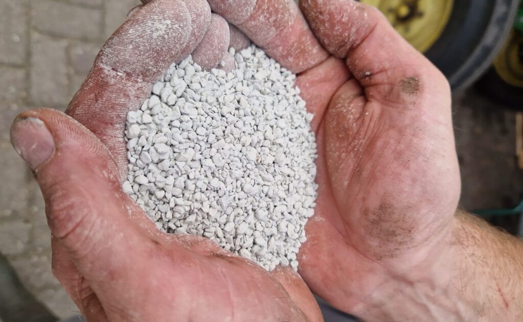 “We zagen in het veld dat bepaalde stukken achterblijven, en dan ga je kijken waar dat aan ligt,” vertelt Jan Menkveld. “Het gaat ons niet alleen om opbrengst, maar vooral om diversiteit. Het is zandgrond, wat van nature eerder verzuurd dan kleigrond. Als de bodem te zuur is, werken belangrijke bacteriën niet goed, raakt de balans zoek en verdwijnen soorten. Door het kalk verwachten we die balans terug te kunnen brengen.” Vader en zoon werken hierbij nauw samen met IJssellandschap en delen inzet en kosten. Het betreft een pilotproject, de resultaten worden na verloop van tijd weer gemeten. Herman: “Uiteraard kan je niet te snel resultaat verwachten, dat is ook niet goed, het gaat niet om snelle winst”.