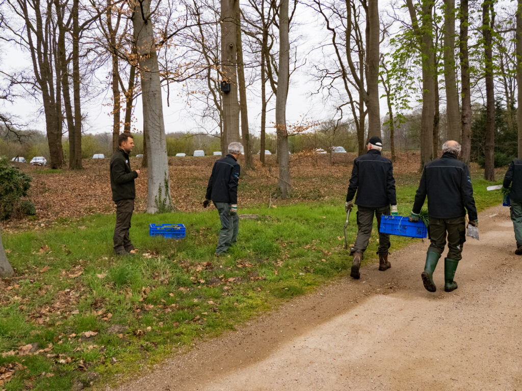 Op de Haere wordt gewerkt aan uitbreiding van stinzenplanten nabij het kasteel. In een bostuin nabij de Haere staan veel sneeuwklokjes in het bos. Vrijwilligers van de Groene Knoop graven deze bollen op nu de bloei is afgelopen, en planten deze uit nabij de Haere. Natuurlijk moeten die op de juiste plaats er weer in, daarover overleggen de buitenmedewerkers met de groep.