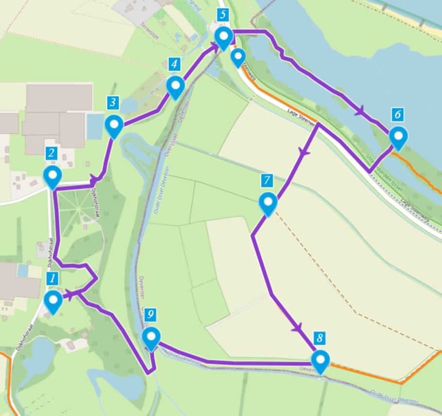 Tijdens deze tocht van bijna 4 km kom je op landgoed Sterrebosch dat normaal niet geopend is voor publiek. Hier hebben de huidige eigenaren het historische cultuurlandschap hersteld. Je ervaart het prachtige park met de monumentale bomen, de oude IJsselloop en de rivierkooi. Daarna vervolgt de route door of langs de Ossenwaard waar natuur en rivier elkaar opnieuw hebben gevonden, en je verkent Het Stadsland, waar IJssellandschap samen met de boeren werkt aan de combinatie landbouw en natuur.